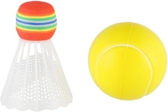 A készlet tartalmaz egy labdát és egy színes kosarat, ami nagyszerűvé teszi lágy teniszhez vagy tollaslabdához.