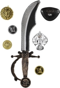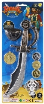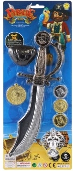 A szett tartalmaz egy műanyag kardot, szemfedőt és kalózérméket – mindent, amire a gyerekeknek szükségük van, hogy azonnal beléphessenek a kalandok világába. Remek jelmezekhez és a mindennapi játékhoz is.