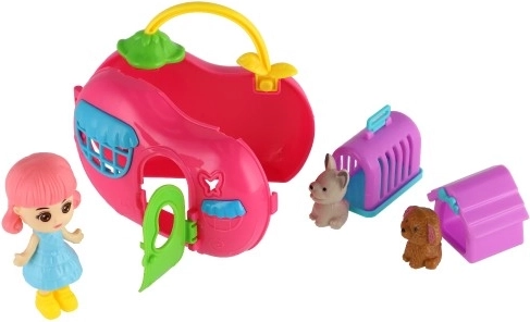 Aranyos baba, kutyus és nyuszi, kiegészítve kis házikókkal és hordozóval, gazdag játékszcenáriókat kínálnak, és fejlesztik a gyerekek képzelőerejét és finommotorikáját.