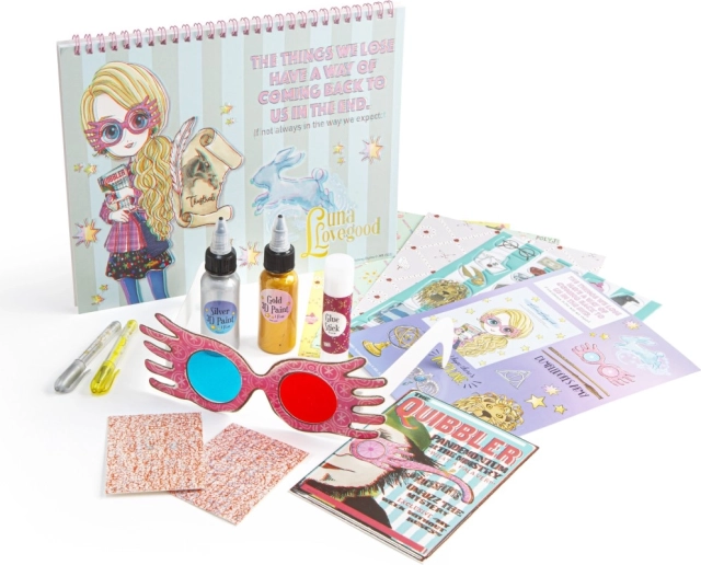 Lépj be a varázsvilágba a HARRY POTTER Luna Lovegood kreatív készlettel. Ez a gyűrűs napló kiegészítőkkel lehetővé teszi, hogy egyedi jegyzeteket és a Roxfort által ihletett dekorációkat alkoss. A csomag mindent tartalmaz a személyes stílushoz: gyűrűs napló, habmatricák, 3D festékek, zselés tollak, ragasztó, matricák és meglepetéskártyák, valamint 3D szemüveg az extra hatásért.