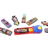 Ez a teljes versenykészlet minden olyan gyermeket megörvendeztet, aki szereti a sebességet és a vetélkedést. A masszív, fém kisautók remekül illeszkednek a kézbe, és a kilövő segítségével villámgyorsan előrelőnek. A készlet fejleszti a finommotorikát, a kéz–szem koordinációt, valamint a képzeletet saját versenyek kitalálásakor.