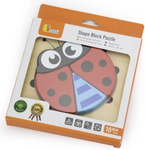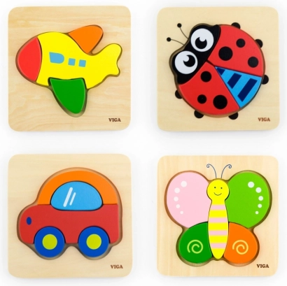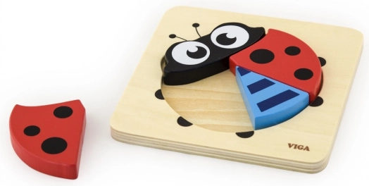Ez az egyszerű és magával ragadó fa kirakó ideális első puzzle a gyermekek számára. A 4 robusztus elem pontosan illeszkedik a fa alaplap formakivágásába, így a gyermek gyorsan megérti a kirakás elvét, és örömmel állítja össze a kedves katicabogár képet. A játék támogatja a koncentrációt, a türelmet és a kezdeti logikai gondolkodást.