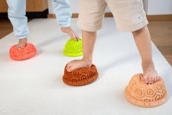 Az érzékszervi félgömb teknőspáncél formában ideális motoros játékokhoz, terápiához és otthoni gyakorláshoz. Domború, texturált felülete kellemes taktilis stimulációt nyújt, támogatja a propriocepciót, valamint segíti a koordináció és stabilitás fejlesztését.