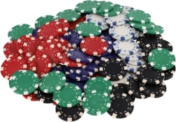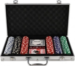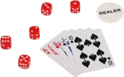A készlet 300 zsetont tartalmaz öt különböző színben, két pakli játékkártyát és öt dobókockát, így különféle kártya- és kockajátékok játszhatók.