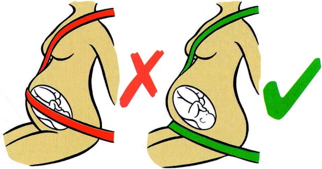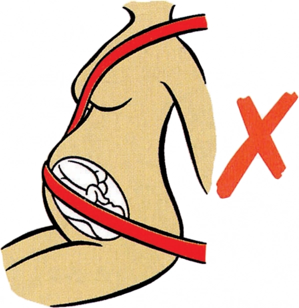 A baleseti statisztikák igazolják, hogy a magzat súlyosan megsérülhet vagy életét veszítheti, ha a biztonsági öv az anya hasa fölött vagy keresztben halad át.