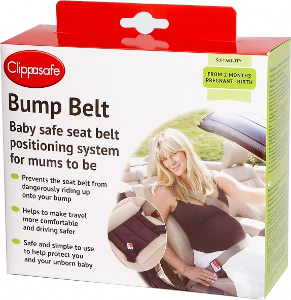 A Clippasafe terhességi biztonsági öv a várandósság 2. hónapjától a szülésig használható.
