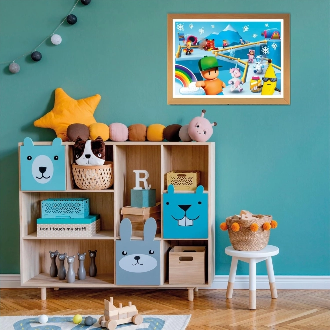 Szórakoztató gyerek puzzle STUMBLE GUYS motívummal, 180 tartós darabbal, amelyek összeillesztve kb. 48,5 × 33,5 cm-es képet alkotnak. A csomagban ráadásként egy exkluzív matrica is található. Remekül fejleszti a türelmet, a logikát és a finommotorikát.