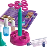 A praktikus kémcsőállvány megkönnyíti az adagolást és a keverést, míg a flakon lehetővé teszi a kész parfüm tárolását. A képes útmutató érthetően magyarázza a lépéseket, és további kísérletekre inspirál, amelyek fejlesztik a kreativitást és a tudomány iránti érdeklődést.