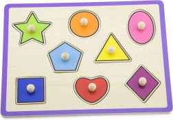 Szórakoztató és interaktív játék, amely 8 különböző színű darabot tartalmaz különböző formákban, mindegyik fogantyúval ellátva, amely megkönnyíti a kicsi kezekkel való manipulációt. A játék kiváló minőségű fából készült, ami garantálja annak hosszú élettartamát. A felhasznált anyagok és festékek környezetbarátak és teljesen biztonságosak a gyerekek számára.