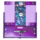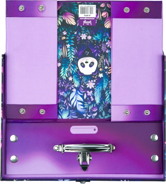A fém fogantyú és a klasszikus csatt egyszerű és biztonságos zárást biztosít. A méretének köszönhetően ideális iskolaszerek, játékok vagy személyes tárgyak tárolására. A Jungle Panda dizájn esztétikai elemet ad, ami elbűvöli a gyerekeket és felnőtteket egyaránt.