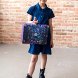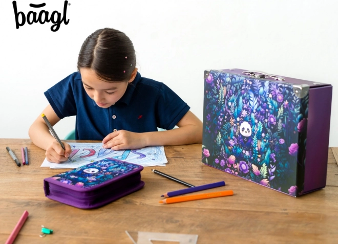 Baagl összecsukható iskolai bőrönd Jungle Panda tökéletes választás mindenkinek, aki egyedi és praktikus megoldást keres iskolaszereinek tárolására. Ez a bőrönd erős, laminált papírból készült és fém sarkokkal van ellátva, ami biztosítja a tartósságát. A patentokkal könnyen összecsukható és kinyitható, ami megkönnyíti a szállítást és tárolást.
