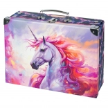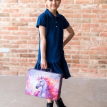 A bőrönd kényelmes átszállító fém fogantyúval van ellátva és klasszikus csattal zárható, ami biztosítja használat közbeni biztonságot. A gyerekek imádni fogják az vonzó és játékos kialakítást, amely alkalmas plüssállatok, iskolaszerek vagy játékok tárolására.