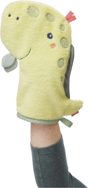 Száradás után a mosdókesztyű remek kézbábként szolgál. Fejleszti a fantáziát és a finommotorikát – a móka a fürdés után sem ér véget.