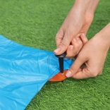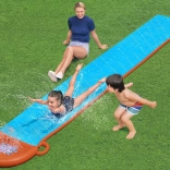 A telepítés rendkívül egyszerű. Csak terítse le a csúszdát a fűre, csatlakoztassa a tömlőt, és élvezze a hosszú órákig tartó vízi szórakozást a friss levegőn.