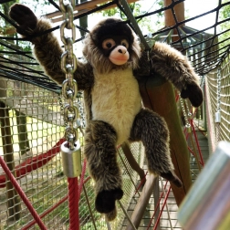 A plüss majom részletgazdag kidolgozással készült, hogy élethűen utánozza az élő majmot.