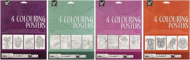 Minden csomag négy különböző színezhető plakátot tartalmaz, egyedi művészeti élményért.