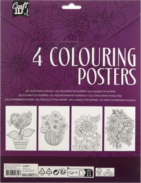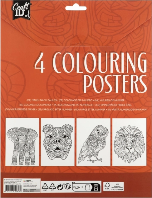 Fedezze fel a kreativitás világát a Craft ID márkájú színezhető plakátjainkkal. Minden csomag négy plakátot tartalmaz, amelyek elvarázsolják önt a fantáziával teli művészi világba. A plakátok részletgazdag illusztrációkat tartalmaznak, a virágmintáktól az állati arcokig, amelyek várják az ön színeit.