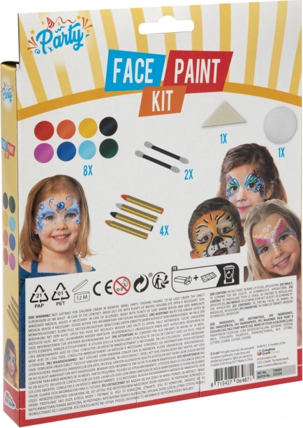 Az arcfestő készlet ideális bármilyen ünnepre, ahol kreatív mintákkal szeretne ragyogni. Nyolc színt tartalmaz, köztük élénk és színes árnyalatokat, amelyeket gyermeke imádni fog. Az alkalmazás egyszerű, csupán finoman vigye fel a színeket az arcra vagy a testére az applikátorral. Nagyobb felületekre szivacsot is használhat, hogy egyenletes fedést érjen el.
