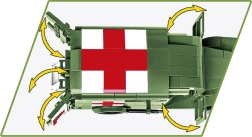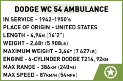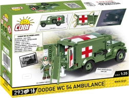 Állítsd össze a történelmi katonai mentőautó modelljét, a Dodge WC 54-et a 2. világháborúból ezzel a COBI készlettel, amely 293 darabból és egy katona figurából áll.