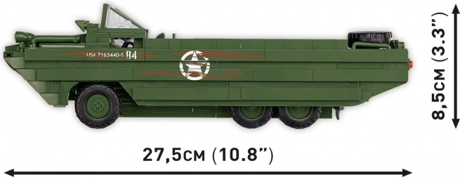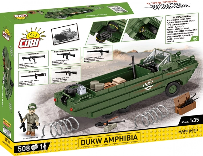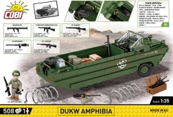 Az Amfibiák DUKW építőkészletet a történelem és a katonai technika szerelmeseinek tervezték. A modell 1:35 arányú, és az ünnepi logóval díszítve van a szövetségesek normandiai partraszállásának 80. évfordulójára. Valósághű elemeket kínál, mint a forgó kerekek és az amerikai katona sok kiegészítővel, köztük bazooka, Browning M1 puska, Garand és Thomson. A rakterében ládák, hordók, kannák és pótkerék található.