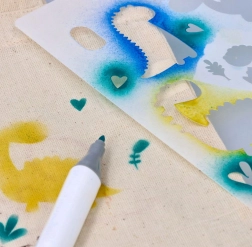 A készlet tartalmaz sablonokat dinoszaurusz és űrhajós motívumokkal, amelyek végtelen lehetőségeket kínálnak művészi alkotásaidhoz.