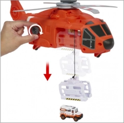 A Matchbox Akciópilóták Mentőhelikopter több mint 40,5 cm hosszú és valódi élményeket nyújt mentési küldetésekkor. Induljon akcióba, nyomja meg a kart a fogantyún a rotor aktiválásához, és induljon a helyszínre. Amint megérkezik, indítsa el a csörlőt, hogy elkapja az 1:64 arányú fém járművet. Leszállás után átalakíthatja a helikoptert mentőállomássá GPS aktiválással.