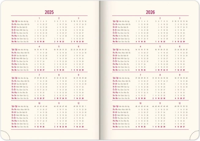 - Havi tervezőnaptár 2025 és 2026 évekre.