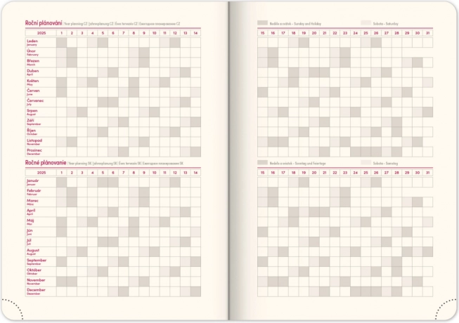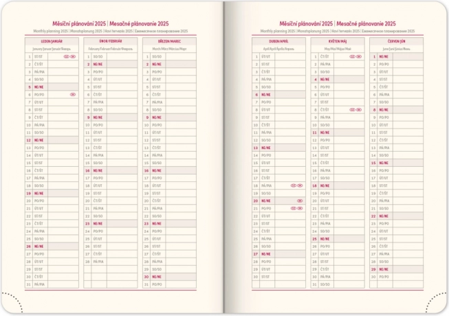 Heti napló Notique Twill 2025 elegáns kék-ezüst színben ideális segítőtárs napjai megszervezéséhez. Átlátható heti beosztást kínál cseh-szlovák naptárral és többnyelvű feliratokkal.