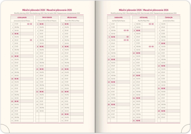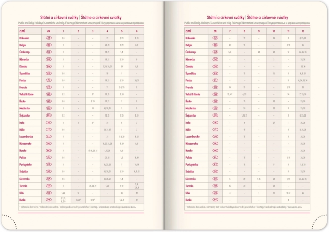 - Tartalmazza a cseh és szlovák ünnepeket és a nemzetközi ünnepeket.