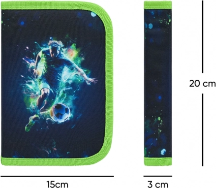 A feltűnő futball-dizájnnal készült, egyszintes BAAGL tolltartó ideális választás minden iskolás számára. A két kihajtható fülnek és az átgondolt belső elrendezésnek köszönhetően a ceruzák, tollak és a vonalzó mindig áttekinthetően a helyükön lesznek.
