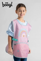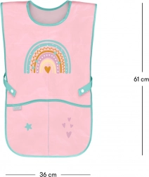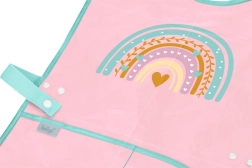 Praktikus, rózsaszín gyerek kötény szivárvány mintával, amely megóvja a ruhát alkotás, főzés és barkácsolás közben. Mosható felület, két tágas zseb és kényelmes oldalsó záródás a gyors és egyszerű felvételért.