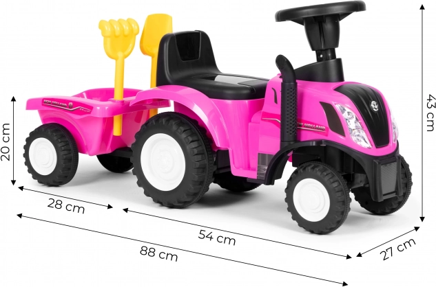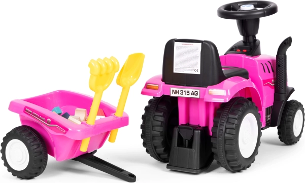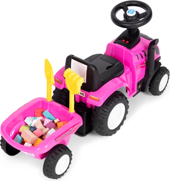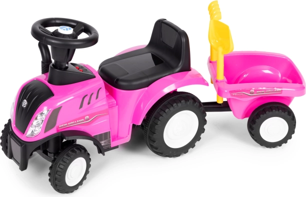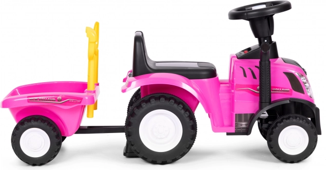 Lábbal hajtós traktor utánfutóval gyerekeknek, interaktív kormány és hangok NEW HOLLAND – Rózsaszín