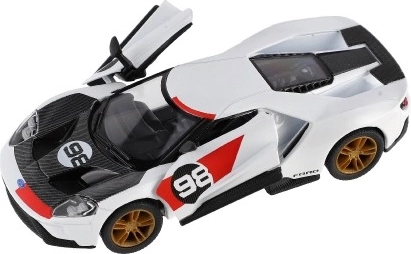 A Ford GT modellautó 1:38 méretarányban készült, és hű mása az ikonikus sportkocsinak. Egyedülálló visszahúzós funkciójának köszönhetően a gyerekek és a gyűjtők is átélhetik a sebesség izgalmát. A modell nyitható ajtókkal rendelkezik, amelyek növelik az interaktivitást és a játék realisztikusságát. Részletgazdag kivitele miatt ideális gyerekjátékra és kiállításra is.