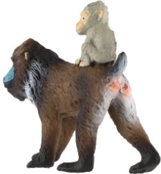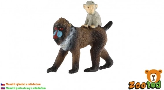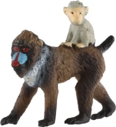 Ez a gondosan kidolgozott mandrill figura egy nőstényt ábrázol kölyökkel a hátán, ahogyan a vadonban is megfigyelhető. A valósághű arcfestés és a szőrzet textúrái hiteles megjelenést adnak, amely örömet szerez gyerekeknek, pedagógusoknak és gyűjtőknek egyaránt.