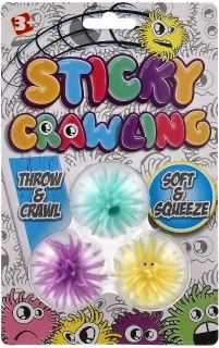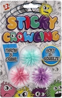 Szórakoztató készlet három ragadós labdával, amelyek sima felületre, például üvegre vagy csempére dobva lassan „lemásznak”. A labdák szilikon anyagból készültek, puhák, nyomkodhatók, és a ragadós felületnek köszönhetően sok érzékszervi élményt nyújtanak. Ideálisak fidgethez és stresszoldó játékhoz, egyszerűen használhatók, és 3 éves kortól ajánlottak.