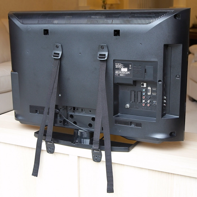 Biztosítsa otthonát a TV felborulás-gátló hevederekkel, amelyek védik a gyerekeket a nagy TV-képernyők leborulásának veszélyétől.