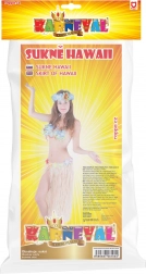 Ez a stílusos hawaii szoknya tökéletes alap egy egzotikus jelmezhez. Vékony, természetes árnyalatú műanyag szalagokból készült, derekán élénk virágok díszítik, amelyek látványos trópusi hatást keltenek. A 72 cm-es hossz tánc közben szép mozgást és a teljes esemény alatt kényelmes viseletet biztosít.