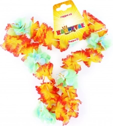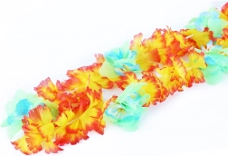 Színes, 100 cm hosszú hawaii nyaklánc, ideális kiegészítő farsangra, bulira és nyári ünnepségekre. Színes virágszirmokkal díszített, amelyek egzotikus és vidám megjelenést kölcsönöznek jelmezednek.