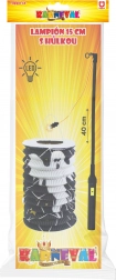 Ez a stílusos halloweeni lampion igazi titokzatos hangulatot visz az ünneplésbe. A szellemmintás papír kivitel sötétben érvényesül igazán, a teamécses tartója pedig kellemes, meleg fényt varázsol. A csomag része egy 40 cm hosszú világító pálca is, amely a markolaton lévő kapcsoló egyszerű átbillentésével kapcsolható fel.