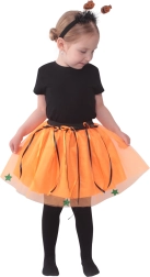 Adj különleges megjelenést a kis parádésnak minden halloweeni bulin! A jelmez jellegzetes narancs-fekete színeivel, a pelyhes tüllszoknyával és a hozzá illő, cukis tököcskés fejpánttal azonnal magára vonja a figyelmet. A rugalmas deréknak köszönhetően a szoknya könnyen felvehető és kényelmes.