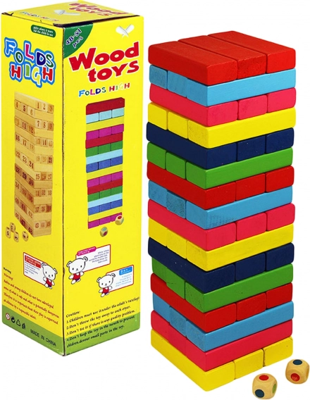 Színes fa torony nagyszerű választás a szórakozásra és a motoros képességek fejlesztésére. A játék lényege a meglévő torony színes kockáinak fokozatos eltávolítása és a tetejére stackelése.