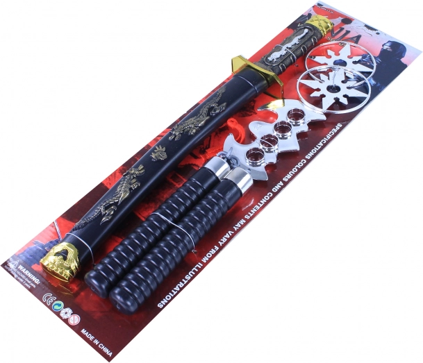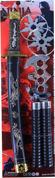 Ezzel a nindzsa játékkészlettel minden kis harcos elmerülhet a harcművészetek világában. A készlet része egy díszített pengéjű katana tokkal, és további játékok, mint a dobócsillag és a nunchaku, a tökéletes harcos játékélményért.