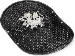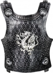 Lenyűgöző dizájn sárkányos szimbólumokkal a páncélon és pajzson, ami minden kis lovagot elbűvöl.
