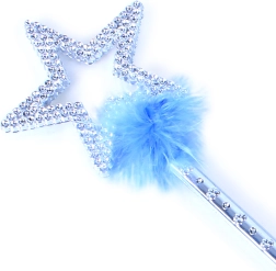 A varázspálca csillagos kialakítással és kék kövekkel rendelkezik, amelyek kiemelik annak varázslatos eleganciáját.
