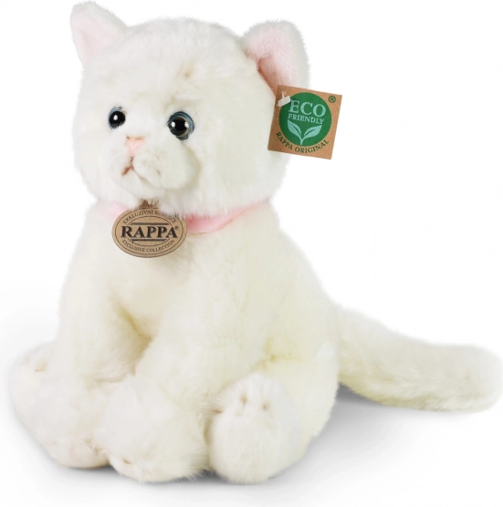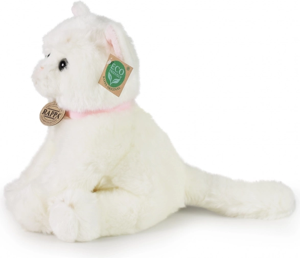 Bemutatjuk a RAPPA márkájú bűbájos plüss macskát, amely részletgazdag kidolgozással és környezeti felelősséggel készült. Ez a fehér macska rózsaszín nyakörvvel van felszerelve, ami kiemeli természetes és játékos jellegét.
