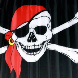 Teremts igazi kalózhangulatot a klasszikus fekete zászlóval fehér koponyamotívummal. A kalózzászló könnyű, jól látható, és a fa rúdnak köszönhetően a kisebb gyerekek számára is kényelmesen fogható. Remek kiegészítő jelmezhez, szobadekorációnak vagy kelléknek tematikus fotózáshoz.