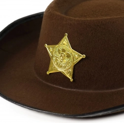 Stílusos barna cowboy kalap gyerekeknek, amely igazi vadnyugati hangulatot ad minden játéknak. A seriffcsillag révén a kis cowboyok tekintélyt szereznek a városban, és rengeteg kreatív szórakozásban lehet részük. 3 éves kortól ajánlott.