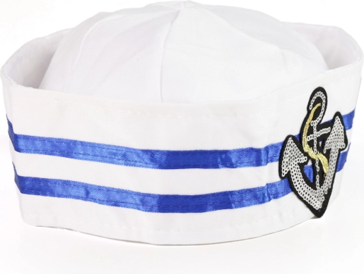 Stílusos gyermek matrózsapka klasszikus fehér színben kék csíkokkal és horgony emblémával, amely garantálja, hogy a kis kapitány szem előtt lesz. Ideális farsangra, álarcosbálra, iskolai műsorokra és tematikus bulikra. A könnyű textilanyag és az univerzális fazon kényelmessé teszi, és könnyen kombinálható jelmezzel. Matróz dizájn, kényelmes viselet és feltűnő horgony applikáció ad autentikus megjelenést minden jelmezhez.