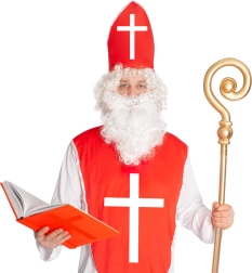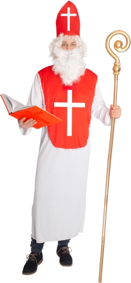 Ez a felnőtteknek készült Mikulás-jelmez egy hosszú, fehér ruhából (kb. 145 cm vállmagasságtól mérve) és egy markáns fehér kereszttel díszített piros mellrészből áll. A csomag része továbbá egy tépőzáras süveg a gyors és biztonságos rögzítéshez. Az univerzális szabásnak köszönhetően a jelmez kényelmesen viselhető és könnyen rétegezhető.
