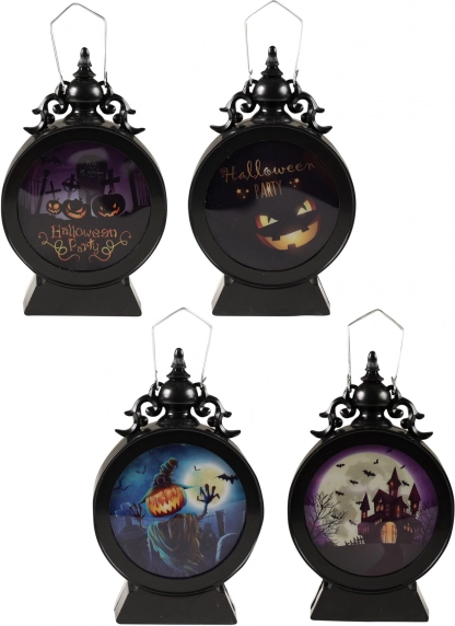 Ez a stílusos halloweeni lámpa kerek, lámpás jellegű akcentusként készült beltéri díszítéshez és bulikhoz. Bekapcsolás után automatikusan váltogatja a színeket, látványos fényhatást keltve, amely kiemeli a dekorációt és misztikus hangulatot ad bármely térnek.